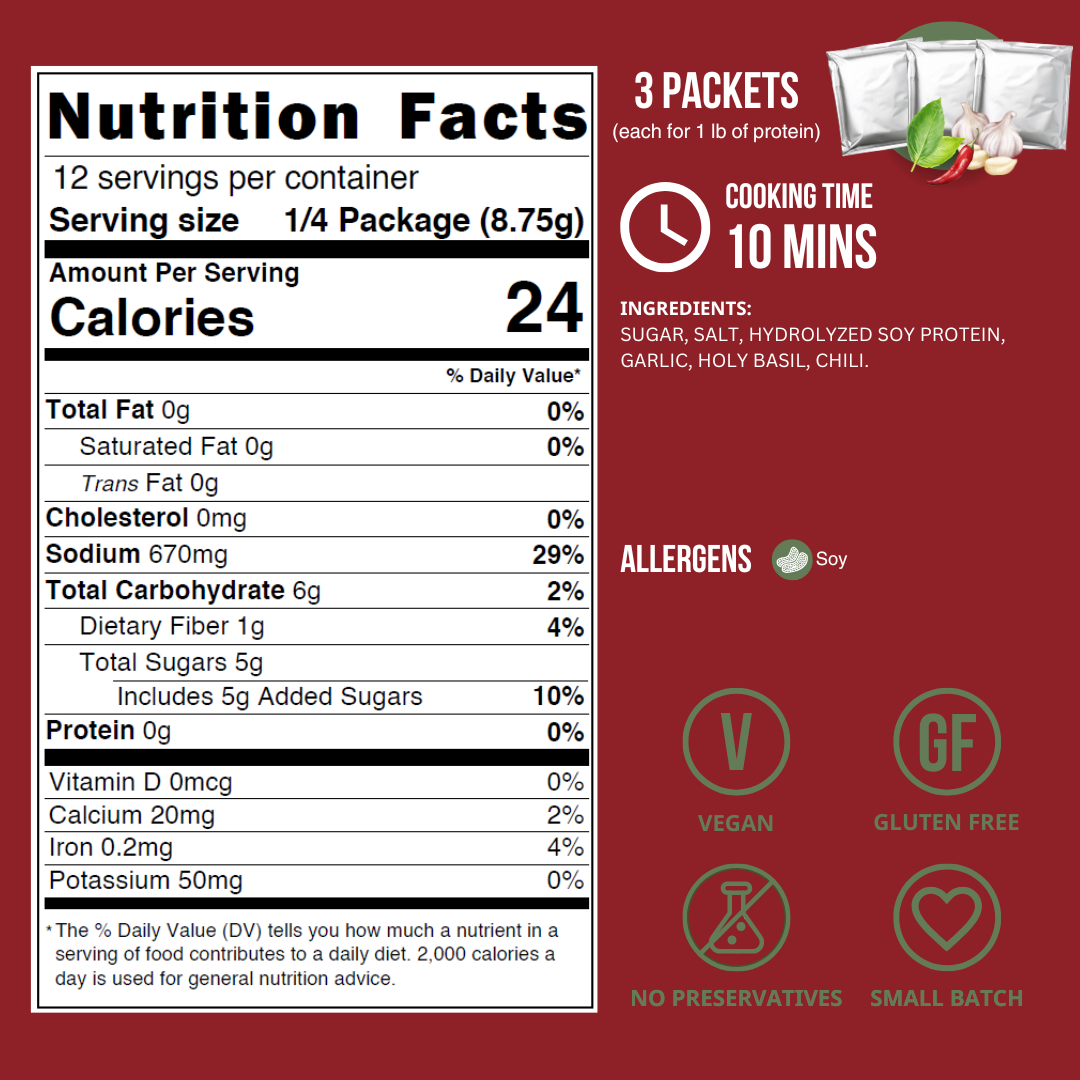PAD KRA PAO Thai Holy Basil Stir-Fried Starter - 3 Packets (making 12 dishes)