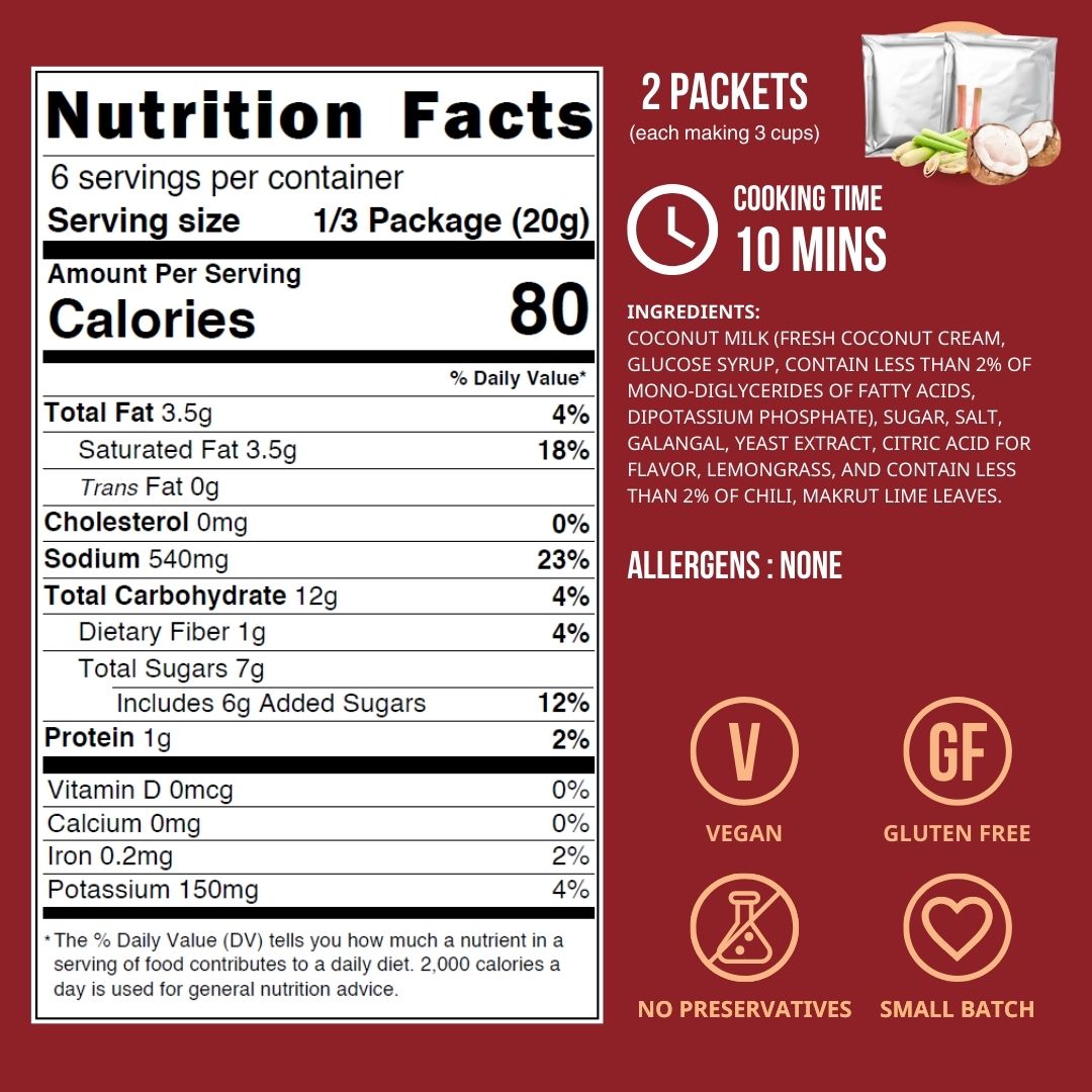 TOM KHA Thai Coconut Soup Starter - 2 Packets (making total 6 cups)
